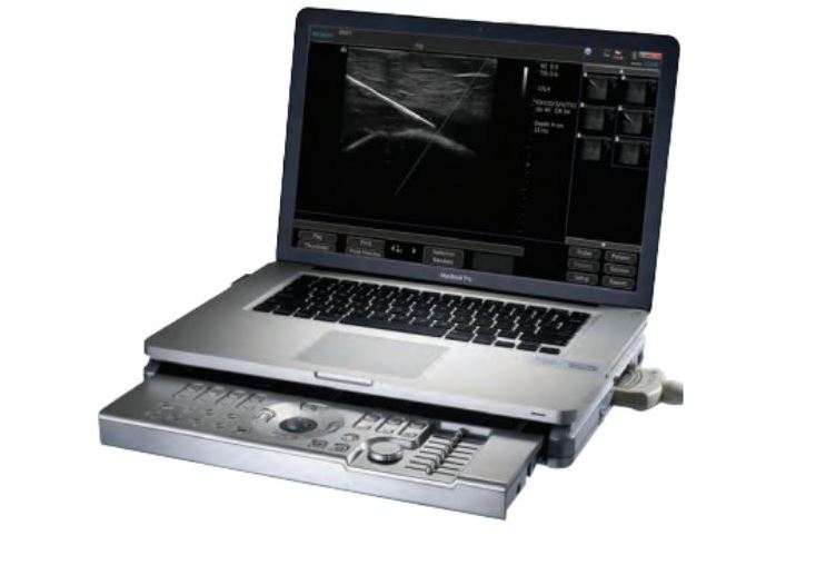 The Terason t3200 is a unique portable ultrasound machine that stands out from traditional “laptop-style” devices. It features a standard laptop keyboard on top with a slide-out drawer housing the ultrasound function’s knobs, buttons, and controls.